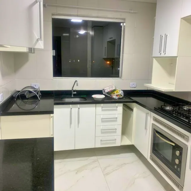 Área de serviço e cozinha totalmente integradas com móveis planejados de excelente qualidade.
